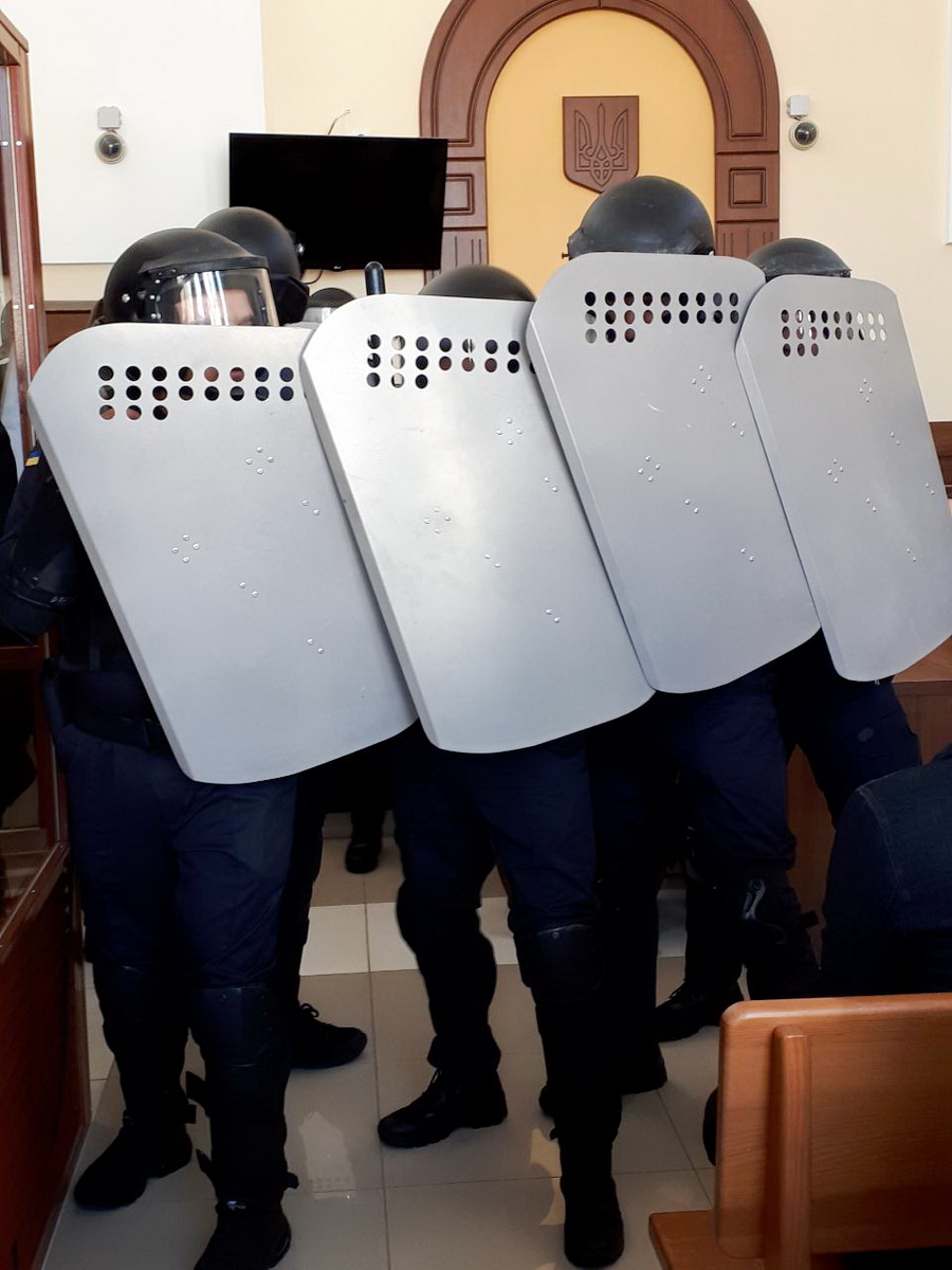 Судові охоронці разом із поліцейськими відпрацювали тактичні прийоми видалення із зали судового засідання порушників громадського порядку, блокування й затримання агресивно налаштованих учасників процесу та супровід транспорту конвойної служби під час виїзду з території суду.