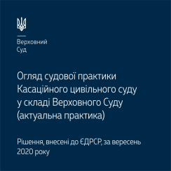 Верховний Суд пропонує ознайомитися з черговим щомісячним оглядом актуальної судової практики Касаційного цивільного суду у складі Верховного Суду за вересень 2020 року.