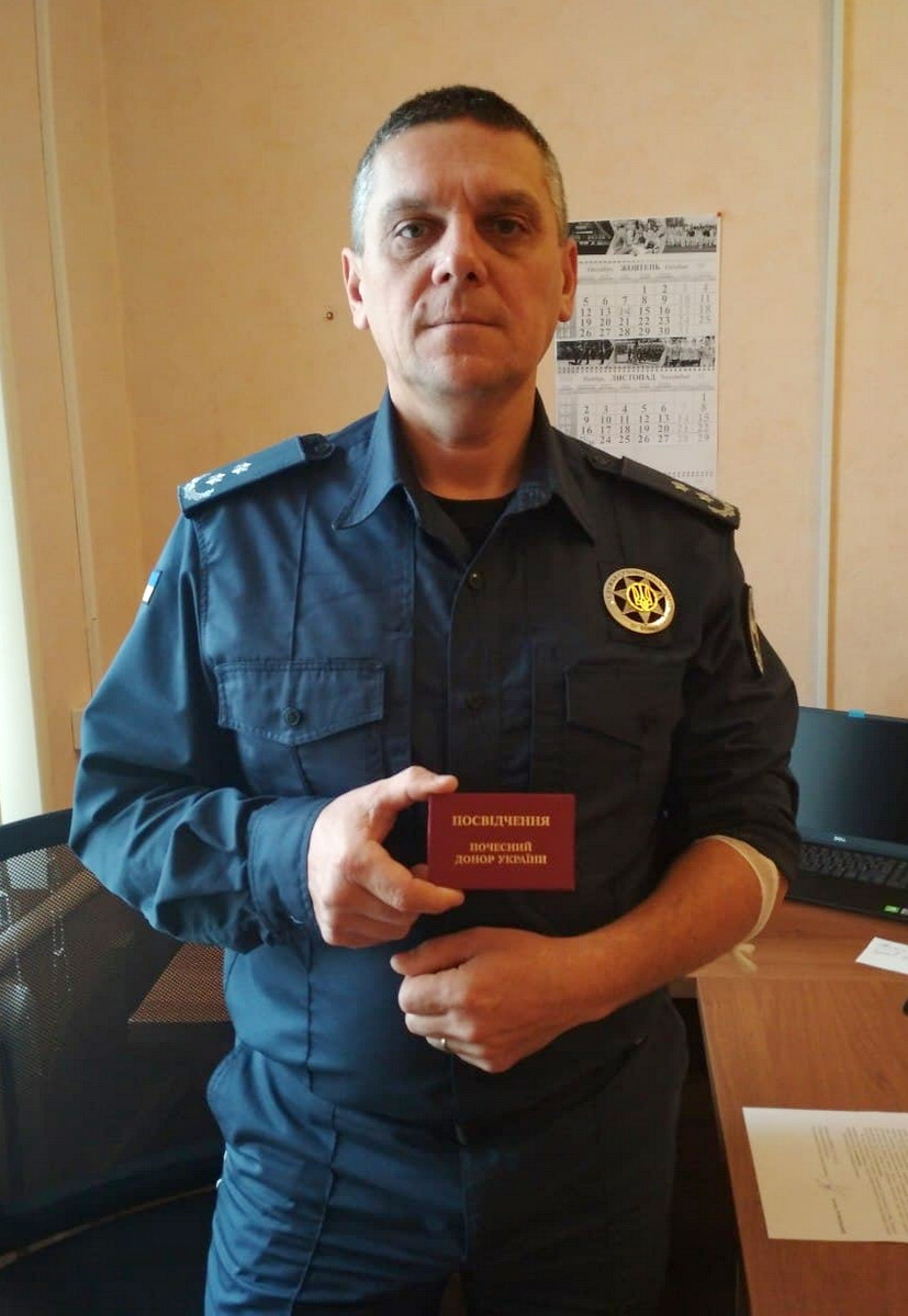 Дехто з охоронців завітав до обласної станції переливання крові вперше, а підполковник Служби судової охорони Едуард Лужецький сьогодні здав кров 55-й раз.