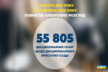 З лютого 2017 року по жовтень 2020 року Вищою радою правосуддя розглянуто 55805 дисциплінарних скарг щодо суддів.