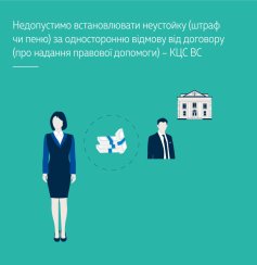 В оспорюваному пункті договору передбачено штраф за односторонню відмову від договору; цей пункт суперечить сутності неустойки, оскільки її встановлення не допускається за правомірну відмову від виконання зобов’язання або односторонню відмову від договору. Тобто обов’язковість положень акта цивільного законодавства випливає з його змісту.