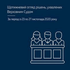 Щотижневий огляд рішень, ухвалених Верховним Судом (за період із 23 по 27 листопада 2020 року)