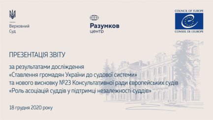 18 грудня 2020 року відбувся круглий стіл на тему «Презентація Звіту за результатами дослідження «Ставлення громадян України до судової системи» та Висновку № 23 Консультативної ради європейських суддів «Роль асоціацій суддів у підтримці суддівської незалежності».
