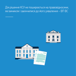 Водночас Велика Палата ВС звернула увагу на те, що встановлена КСУ неконституційність (конституційність) закону, іншого правового акта чи їх окремого положення, застосованого (не застосованого) судом при вирішенні справи, має значення передусім як рішення загального характеру, яким визначається правова позиція для вирішення наступних справ, а не як підстава для перегляду справи із ретроспективним застосуванням нової правової позиції і зміни таким чином стану правової визначеності, вже встановленої остаточним судовим рішенням (п. 9.9 постанови КГС ВС від 29 жовтня 2019 року у справі № 922/1391/18).