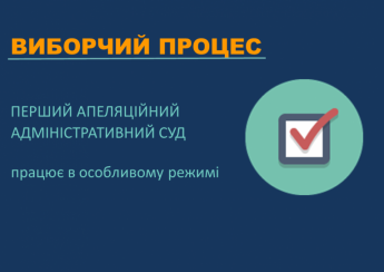 Повідомляємо, що керуючись статтею 155 Закону України «Про судоустрій і статус суддів» від 02 червня 2016 року № 1402 - VIII, Виборчим кодексом України, постановою Центральної виборчої комісії від 22 грудня 2020 року № 569 «Про призначення проміжних виборів народного депутата України о одномандатному виборчому окрузі № 50 (Донецька область)», з урахуванням Положення про Перший апеляційний адміністративний суд, затвердженого наказом голови суду від 18 березня 2020 року № 27/ОД, Положення про апарат Першого апеляційного адміністративного суду, затвердженого рішенням зборів суддів Першого апеляційного адміністративного суду від 18 лютого 2019 року № 3, з метою організації роботи суду на період виборчого процесу Перший апеляційний адміністративний суд працюватиме в особливому режимі з 27 січня 2021 року по 11 квітня 2021 року.