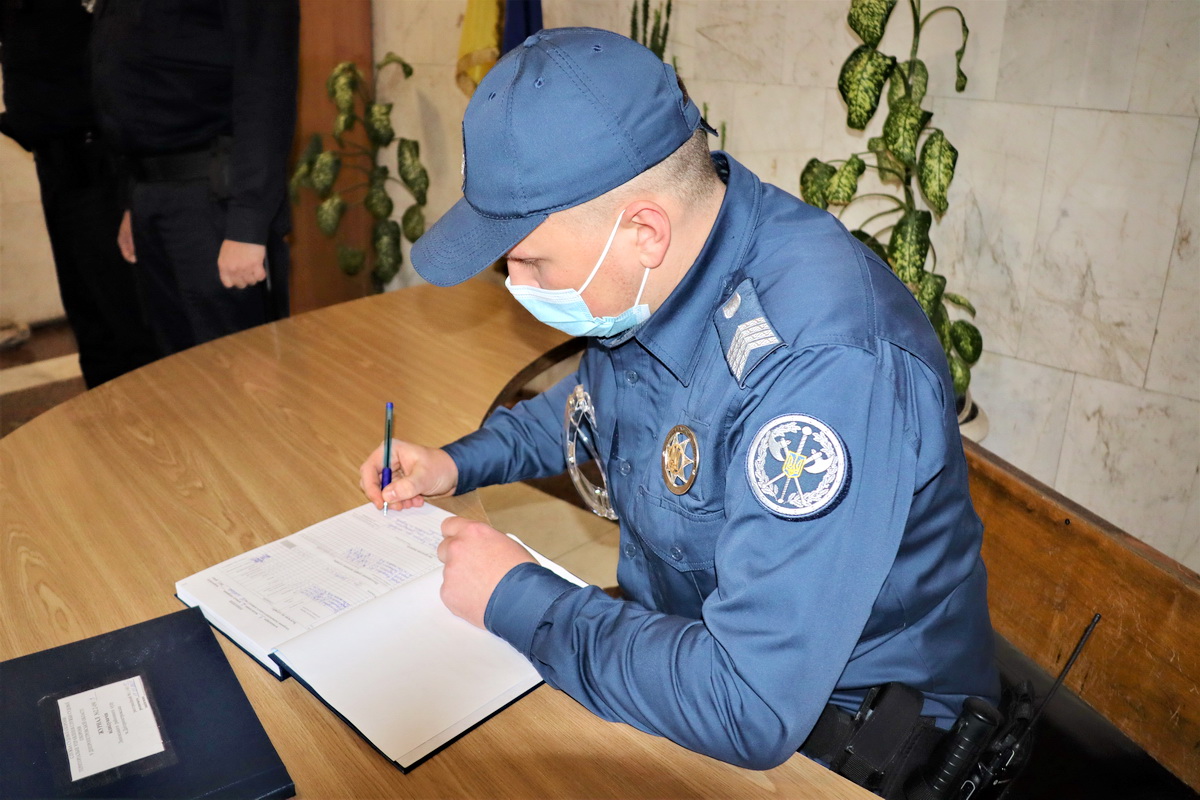 Начальник Територіального управління Служби у Дніпропетровській області полковник Служби судової охорони Сергій Швачка представив колективові суду своїх підлеглих, які здійснюватимуть охорону та забезпечуватимуть безпеку в судовій установі. Водночас тимчасовий виконувач обов’язків голови суду Геннадій Калініченко привітав нових співробітників із початком несення служби.