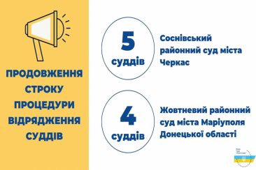 Вища рада правосуддя відповідно до рішень від 16 лютого 2021 року № 368/0/15-21 та № 369/0/15-21 продовжила строк надання суддями згоди на відрядження до Соснівського районного суду міста Черкас та Жовтневого районного суду міста Маріуполя Донецької області до 26 лютого 2021 року.