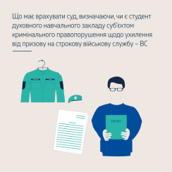 Як зазначено в постанові ККС ВС, визнаючи особу винуватою, суд указав, що суб’єкт кримінального правопорушення, передбаченого ст. 335 КК України, –спеціальний. Відповідно до Закону України «Про військовий обов’язок і військову службу» суб’єктами ухилення від призову на строкову військову службу можуть бути тільки придатні для цього за станом здоров’я громадяни України чоловічої статі, яким до дня відправлення у військові частини виповнилося 18 років, та старші особи, які не досягли 27-річного віку і не мають права на звільнення або відстрочку від призову на строкову військову службу. За змістом ст. 17 вказаного Закону відстрочка від призову на строкову військову службу для здобуття освіти на весь період навчання надається громадянам призовного віку, які навчаються у середніх або вищих навчальних закладах. Статтею 24 Закону України «Про вищу освіту» передбачено обов’язкове ліцензування освітньої діяльності. Оскільки теологічна семінарія не проходила процедуру ліцензування, то навчання в цьому духовному навчальному закладі не дає права на відстрочку від призову на строкову військову службу.