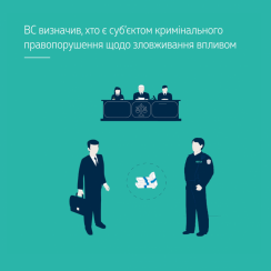 Як зазначено у постанові ОП ККС ВС, джерелом протиправного впливу, що визначений ч. 2 ст. 369-2 КК України, є особа, яка приймає пропозицію, обіцянку або одержує неправомірну вигоду для себе чи третьої особи за вплив на прийняття рішення особою, уповноваженою на виконання функцій держави або місцевого самоврядування, або пропонує чи обіцяє (погоджується) здійснити вплив за надання такої вигоди.
