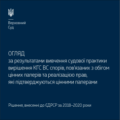 Судовою палатою для розгляду справ щодо корпоративних спорів, корпоративних прав та цінних паперів КГС ВС здійснено вивчення й узагальнення судової практики вирішення Верховним Судом спорів, пов’язаних з обігом цінних паперів та реалізацією прав, які підтверджуються цінними паперами, за 2018–2020 роки.