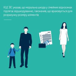 Верховний Суд постановив стягнути з матері аліменти на утримання малолітнього сина: за період із 12 травня 2010 року до 2 квітня 2017 року в розмірі 2 тис. грн. щомісячно, із 3 квітня 2017 року до досягнення дитиною повноліття – в розмірі 5 тис. грн щомісячно, а також стягнути з неї 20 тис. грн на відшкодування моральної шкоди, завданої дитині.