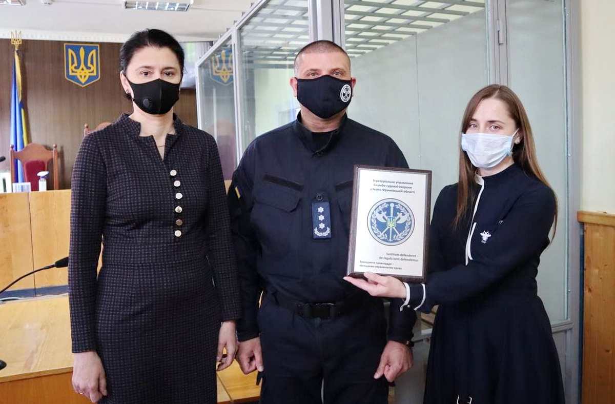 Начальник Територіального управління Служби у Івано-Франківській області полковник Служби судової охорони Андрій Маланій представив колективові установи співробітників Служби, які виконуватимуть завдання з охорони й підтримання громадського порядку, забезпечення безпеки всіх учасників судових процесів.