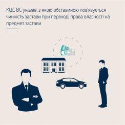 Згідно зі ст. 27 Закону України «Про заставу» застава зберігає силу, якщо за однією з підстав, зазначених в законі, майно або майнові права, що складають предмет застави, переходять у власність іншої особи. Застава зберігає силу і у випадках, коли у встановленому законом порядку відбувається уступка заставодержателем забезпеченої заставою вимоги іншій особі або переведення боржником боргу, який виник із забезпеченої заставою вимоги, на іншу особу.