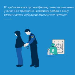 У касаційній скарзі захисник просив перекваліфікувати дії засудженого із ч. 3 на ч. 2 ст. 187 КК України, виключивши з обвинувачення кваліфікуючу ознаку «проникнення в інше приміщення».
