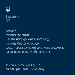 Аналіз судової практики Касаційного кримінального суду у складі Верховного Суду щодо перегляду кримінальних проваджень за нововиявленими обставинами здійснено на основі судових рішень цього суду, внесених до Єдиного державного реєстру судових рішень (за 2018 рік – липень 2021 року).