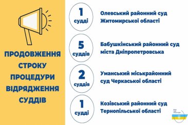 З метою врегулювання навантаження та забезпечення належних умов доступу до правосуддя у Олевському районному суді Житомирської області, Бабушкінському районному суді міста Дніпропетровська, Уманському міськрайонному суді Черкаської області та Козівському районному суді Тернопільської області, Вища рада правосуддя вирішила, що строк надання суддями згоди на відрядження до цих судів слід продовжити.