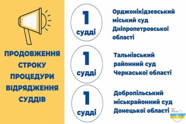 Вища рада правосуддя відповідно до рішень від 9 листопада 2021 року № 2192/0/15-21, № 2194/0/15-21 та № 2195/0/15-21продовжила строк надання суддями згоди на відрядження до Орджонікідзевського міського суду Дніпропетровської області, Тальнівського районного суду Черкаської області та Добропільського міськрайонного суду Донецької області до 19 листопада 2021 року.