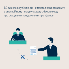 Такого висновку дійшла об’єднана палата Касаційного кримінального суду у складі Верховного Суду, розглянувши касаційні скарги представника потерпілого – адвоката та заступника Генерального прокурора на ухвалу апеляційного суду про повернення апеляційної скарги на ухвалу слідчого судді місцевого суду щодо скасування повідомлення особі про підозру у домашньому насильстві (ст. 126-1 КК України).