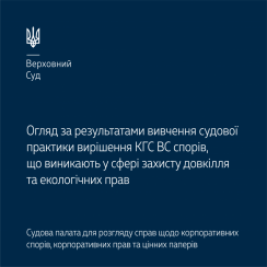 Судовою палатою для розгляду справ щодо корпоративних спорів, корпоративних прав та цінних паперів КГС ВС підготовлено огляд за результатами вивчення судової практики вирішення КГС ВС спорів, що виникають у сфері захисту довкілля та екологічних прав.