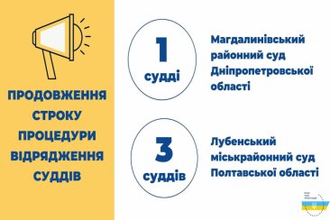 Вища рада правосуддя відповідно до рішень від 18 листопада 2021 року № 2242/0/15-21 та № 2244/0/15-21 продовжила строк надання суддями згоди на відрядження до Магдалинівського районного суду Дніпропетровської області та Лубенського міськрайонного суду Полтавської області до 29 листопада 2021 року.