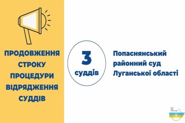 Нагадаємо, Вища рада правосуддя рішеннями від 16 листопада 2021 року № 2218/0/15-21 оголосила про початок процедури відрядження одного судді до іншого суду того самого рівня і спеціалізації для здійснення правосуддя, а саме до Попаснянського районного суду Луганської області.