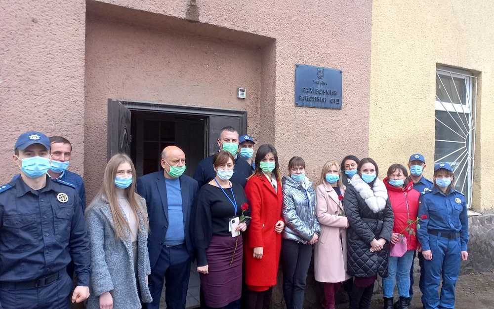 Під час церемонії взяття суду під охорону начальник Територіального управління Служби у Закарпатській області половник Служби судової охорони Роман Мушак представив голові суду Вікторові Ємчуку та колективові судової установи співробітників Територіального управління Служби, які будуть здійснювати охорону суду, ознайомив із завданнями, які покладаються на судових охоронців.