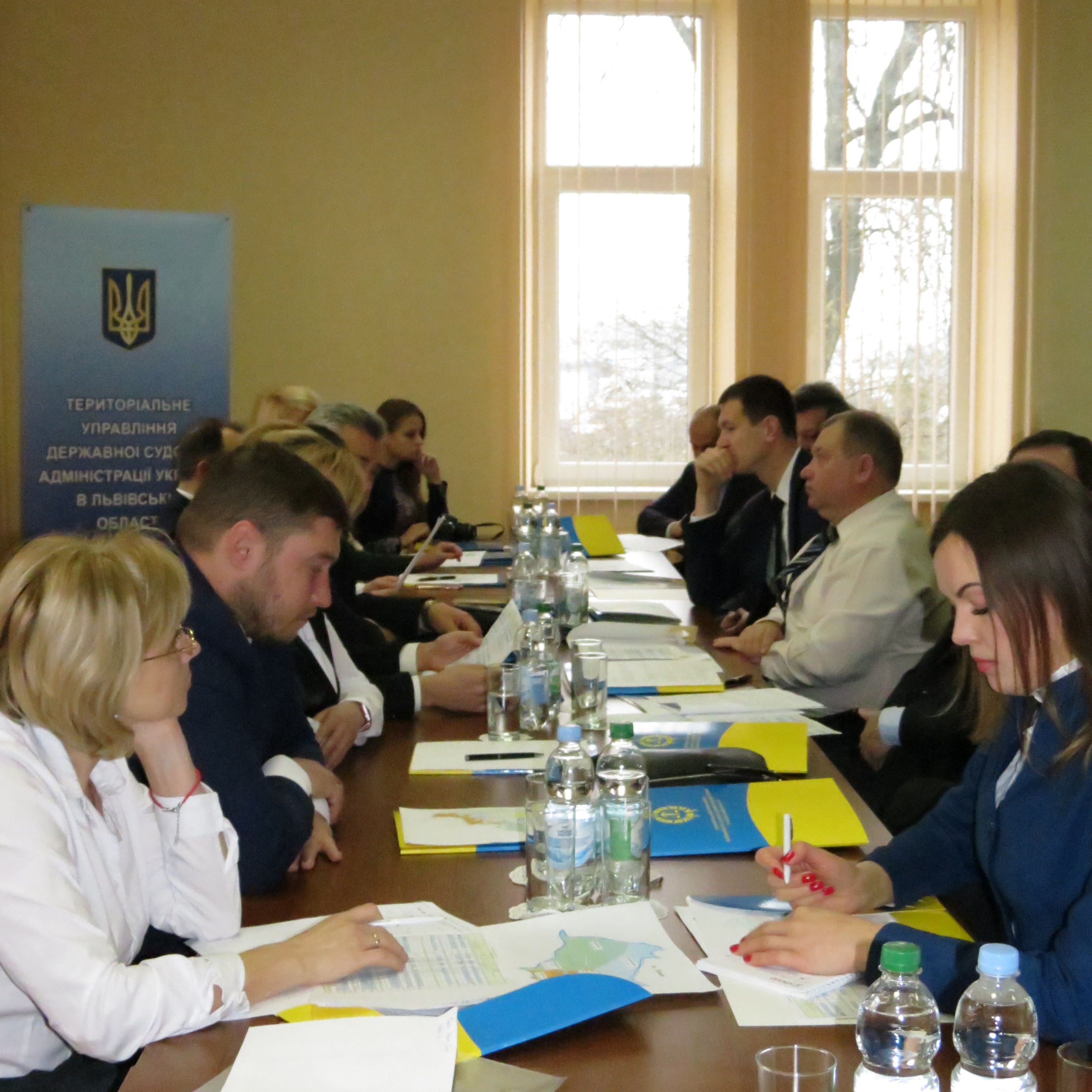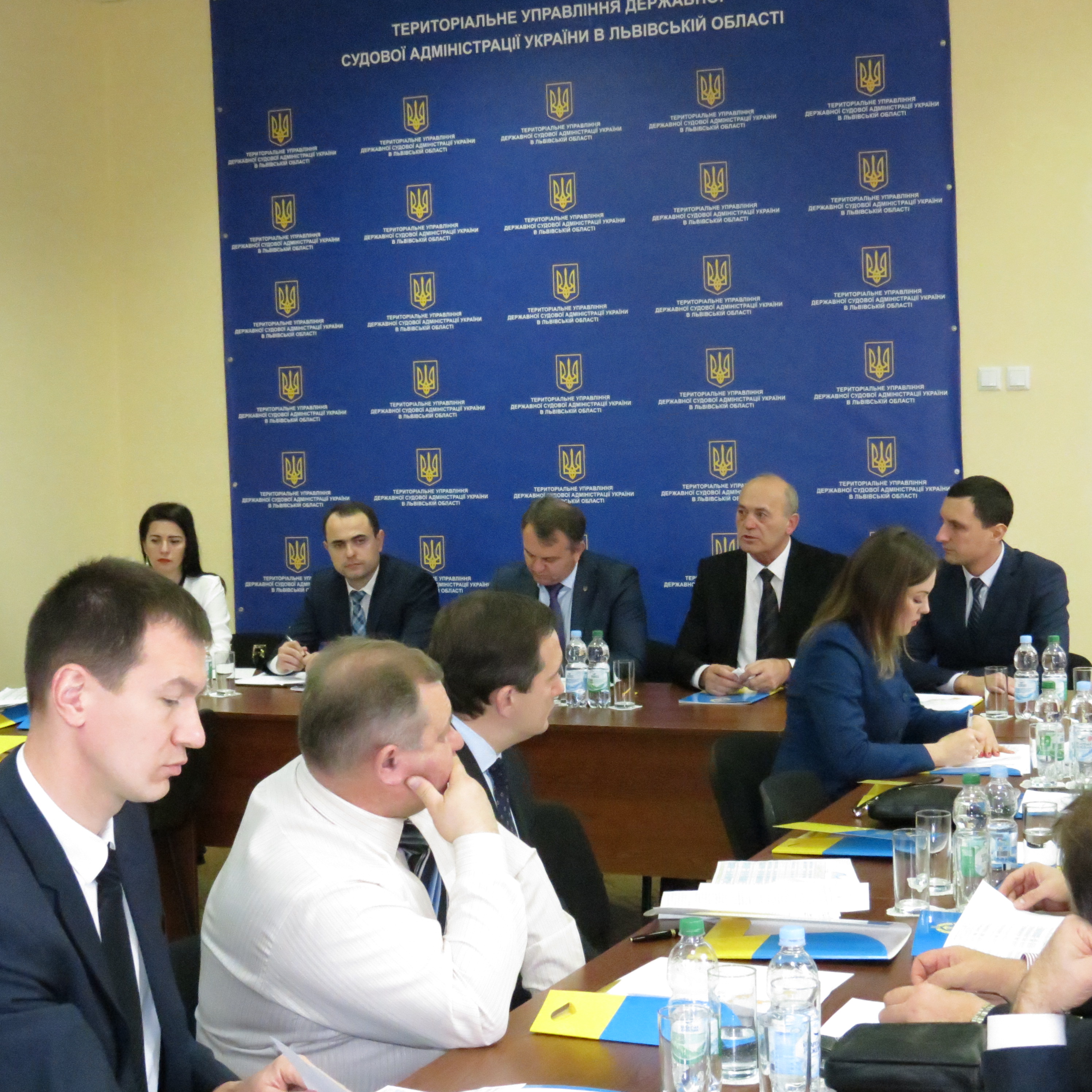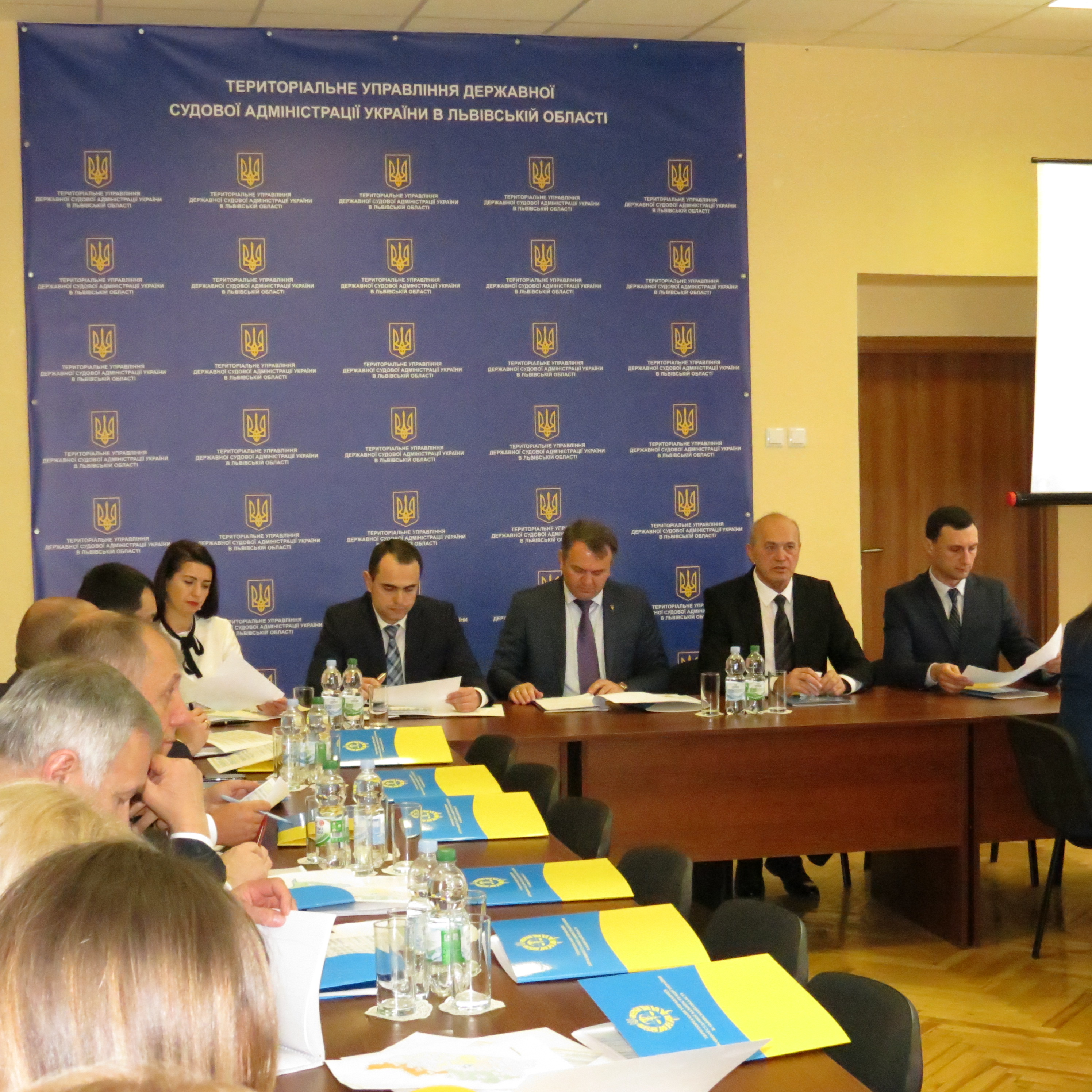 22 листопада 2017 року в приміщенні Територіального управління державної судової адміністрації України в Львівській області відбулась нарада з питань оптимізації місцевих загальних судів м. Львова та Львівської області, яку проведено начальником Територіального управління державної судової адміністрації України в Львівській області Віктором Дейнекою та головою Апеляційного суду Львівської області Петром Каблаком для голів та суддів місцевих загальних судів м.Львова та Львівської області. Для більш ефективного обговорення питання об’єднання судів в нараді взяли участь голова Львівської обласної державної адміністрації Олег Синютка, військовий прокурор Західного регіону України Олег Сенюк, заступник прокурора Львівської області Галина Борейко, заступник начальника Слідчого управління Головного управління Національної поліції у Львівській області Андрій Ткачик.