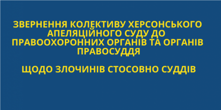 ЗВЕРНЕННЯ КОЛЕКТИВУ ХЕРСОНСЬКОГО АПЕЛЯЦІЙНОГО СУДУ ДО ПРАВООХОРОННИХ ОРГАНІВ ТА ОРГАНІВ ПРАВОСУДДЯ