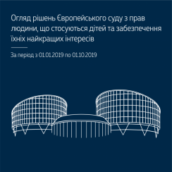 Систематизований огляд рішень Європейського суду з прав людини містить опис практики цього Суду у справах про права дітей та забезпечення їхніх найкращих інтересів, що були постановлені з 1 січня по 1 жовтня 2019 року.