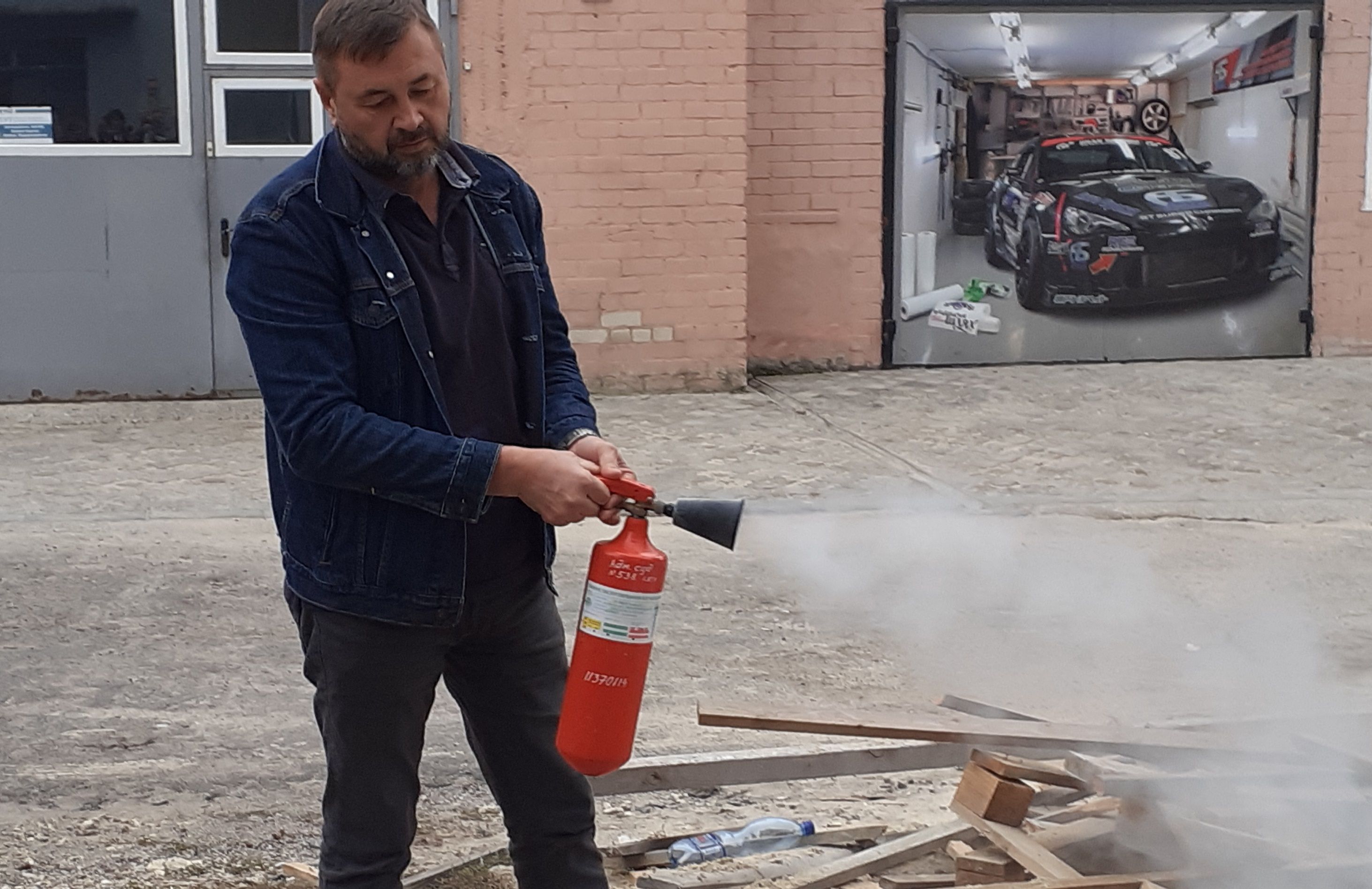 Наприкінці заходу, лектори наглядно продемонстрували правила користування порошковим та вуглекислотним вогнегасниками.