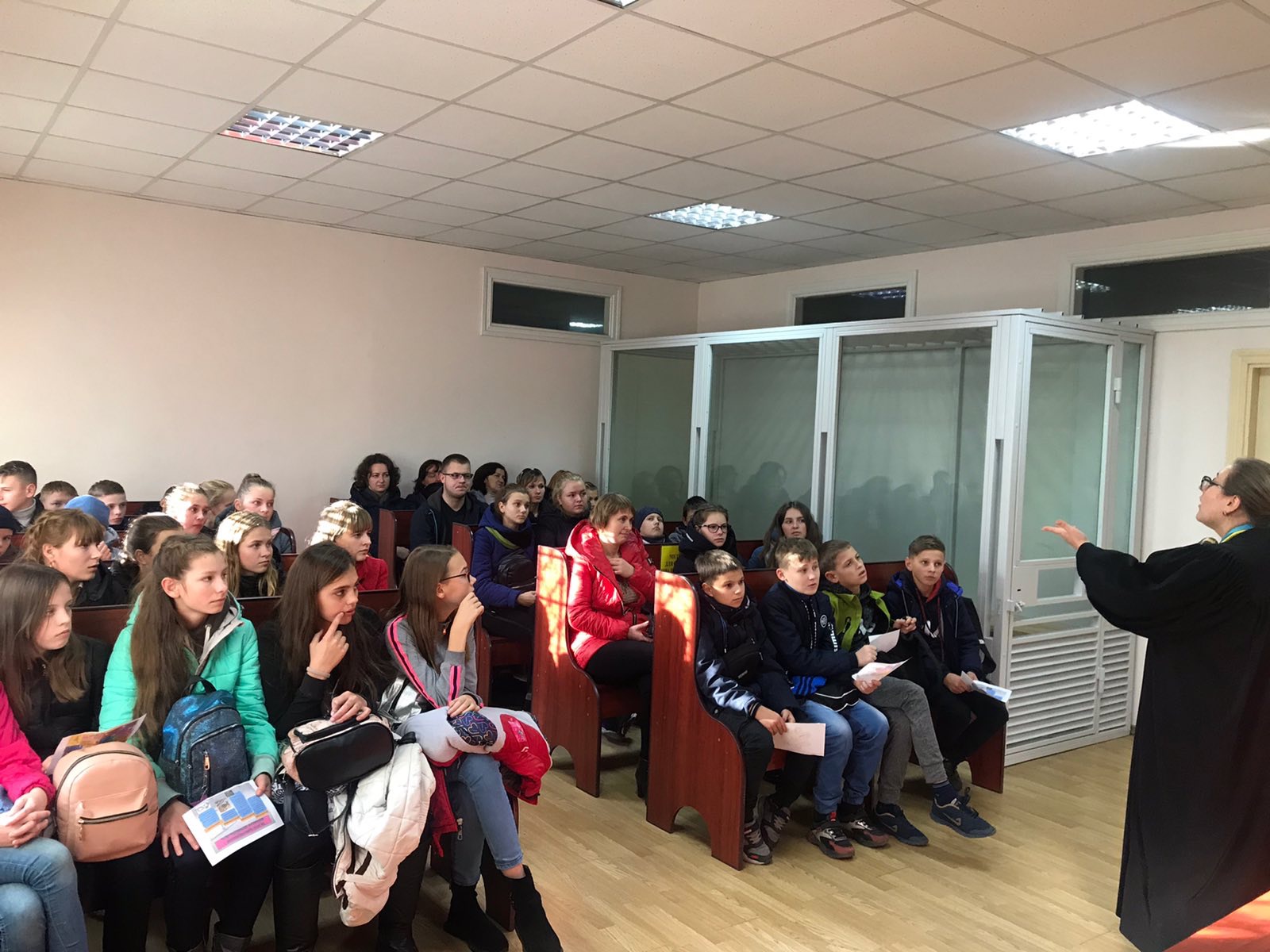 Під час уроків відбулася презентація мультфільмів «Кінь проти хом’яка» та «Слон проти жирафи», знятого в рамках грантового проекту «Підвищення обізнаності дітей з діяльністю судів» за підтримки Програми USAID «Нове правосуддя», де школярі спробували себе у ролі суддів.