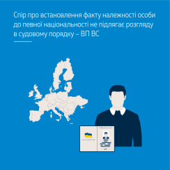 Таким чином, Велика Палата Верховного Суду дійшла висновку, що у зв’язку з неможливістю встановлення в судовому порядку фактів щодо належності осіб до певної національності цей спір не підлягає розгляду не лише в порядку адміністративного судочинства, а й у судовому порядку взагалі.