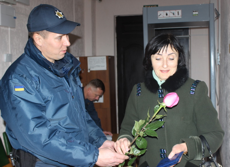Аби додати заходу урочистостей, працівники Служби судової охорони, які заступили на охорону суду, вручали квіти всім присутнім жінкам.