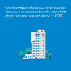 У цій справі суди не встановили, чи є спірне приміщення нежитловим, бо зі стадії проектування житлового будинку воно призначалося для торговельних потреб непромислового характеру, а тому судам потрібно було з’ясувати, чи є це приміщення допоміжним.