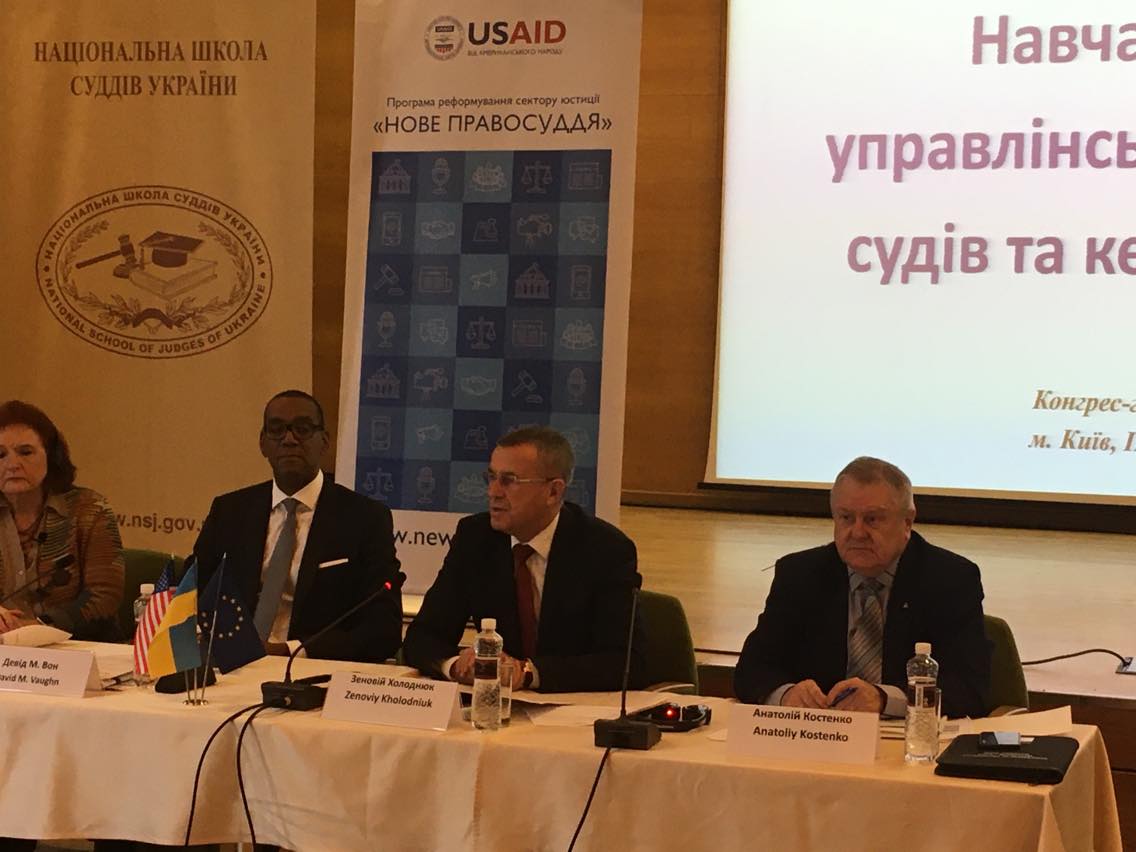 Також з вітальним словом до учасників навчальної програми звернулися: проректор Національної школи суддів України Анатолій Костенко, керівник Програми USAID «Нове правосуддя» Девід Вон, викладачка та експертка Програми USAID «Нове правосуддя», професорка Морін Е. Коннер.