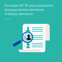 На думку колегії суддів ККС ВС, ці доводи захисника є неспроможними з огляду на таке. Відповідно до положень ч. 1 ст. 385 КПК України після призначення судового розгляду судом присяжних головуючий дає секретарю судового засідання розпорядження про виклик присяжних у кількості семи осіб, які визначаються автоматизованою системою документообігу суду з числа осіб, котрі внесені до списку присяжних.