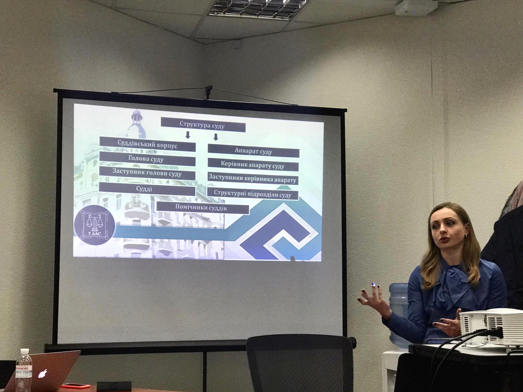 Наприкінці заходу, керівник апарату Сьомого апеляційного адміністративного суду Олена Мілієнко поділилася досвідом впровадження найкращих практик адміністрування та технологій на прикладі власного суду.