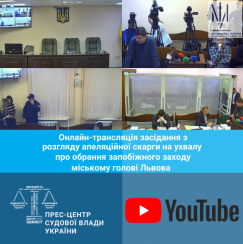 Онлайн-трансляція розгляду Апеляційною палатою Вищого антикорупційного суду апеляційних скарг прокурора та сторони захисту на ухвалу слідчого судді Вищого антикорупційного суду від 27.11.2019 про обрання міському голові Львова запобіжного заходу