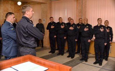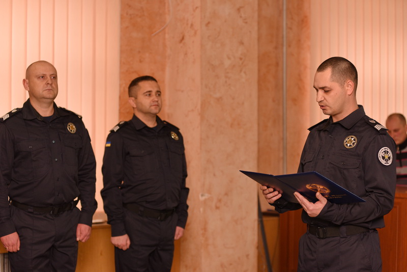 Сім контролерів взводу Територіального управління Служби судової охорони у Рівненській області, які вперше одягли форму, склали Присягу, проголосивши слова вірності Українському народові та Конституції України.