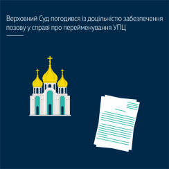 Верховний Суд у складі колегії суддів Касаційного адміністративного суду залишив без змін рішення судів попередніх інстанцій про забезпечення позову у справі про перейменування релігійних організацій, що входять до релігійного об`єднання Української Православної Церкви.