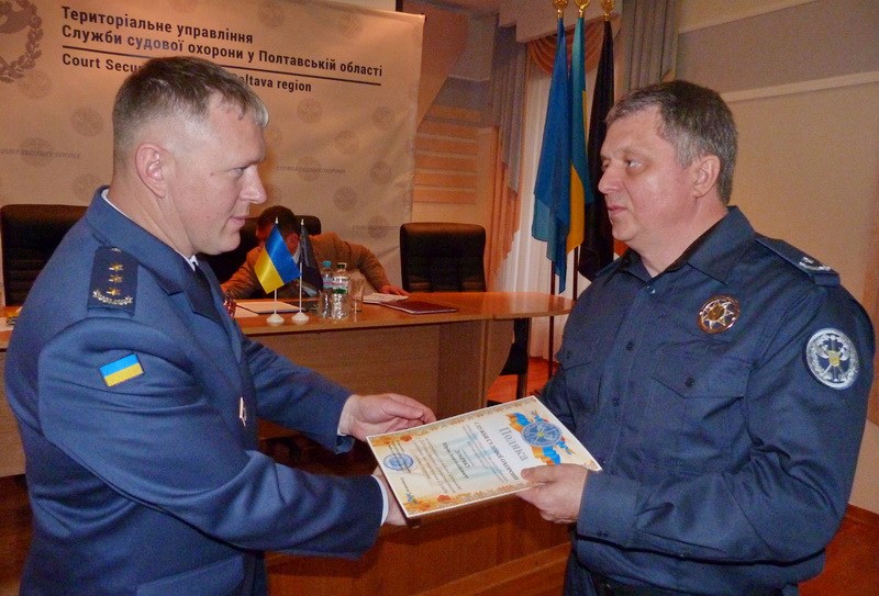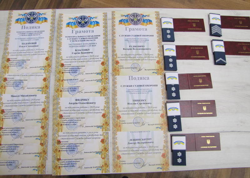 За вагомий внесок у розбудову та становлення Служби судової охорони одинадцятьом співробітникам були присвоєні чергові спеціальні звання. Багато співробітників заохочено подяками та грамотами від Голови Служби судової охорони. Так, у Харкові старші сержанти Віталій Цибульник та Станіслав Нос, які два дні тому затримали чоловіка, що намагався пронести до будівлі Господарського суду Харківської області предмет, схожий на бойову гранату Ф-1, отримали Подяки від Голови Служби судової охорони Валерія Бондаря.