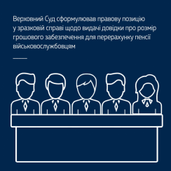 Верховний Суд у складі колегії суддів Касаційного адміністративного суду розглянув зразкову справу за позовом особи, яка отримує пенсію відповідно до Закону України «Про пенсійне забезпечення осіб, звільнених з військової служби, та деяких інших осіб» до органу, що уповноважений видавати довідки про розмір грошового забезпечення для перерахунку пенсії. Цей державний орган відмовив позивачеві у підготовці та наданні територіальному органу Пенсійного фонду України оновленої довідки про розмір грошового забезпечення із зазначенням відомостей про розмір щомісячних додаткових видів грошового забезпечення (надбавки, доплати, підвищення) та премії для здійснення обчислення та перерахунку пенсії.