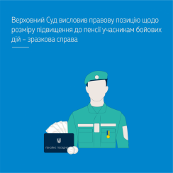 Верховний Суд зазначив, що правова регламентація, згідно з якою позивачеві проведено перерахунок пенсії та здійснюється її виплата, не поширюється на доплату і підвищення до пенсії, передбачені законами України «Про статус ветеранів війни, гарантії їх соціального захисту», «Про поліпшення матеріального становища учасників бойових дій та інвалідів війни» (25 відсотків прожиткового мінімуму для осіб, які втратили працездатність, та цільову грошову допомогу у розмірі 40 грн), які виплачуються у складі пенсії відповідним пенсійним органом, у цьому випадку – відповідачем.