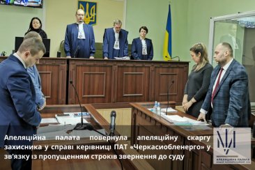 Сьогодні, 11 січня 2020 року, колегія суддів Апеляційної палати розглянула у судовому засіданні клопотання захисника керівниці ПАТ «Черкасиобленерго» щодо продовження строку на апеляційне оскарження ухвали слідчого судді Вищого антикорупційного суду від 26 грудня 2019 року про застосування до підозрюваної запобіжного заходу у вигляді застави.