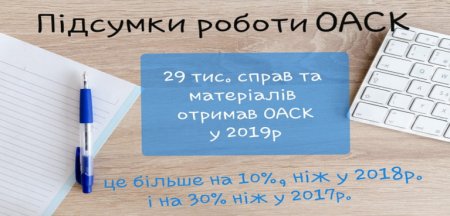 У 2019 році судді завершили розгляд 14,7 тис. справ, у 64% яких було задоволено вимоги позивачів. В середньому щомісяця на розгляд одного судді ОАСК надходило 89 справ та матеріалів, 69 з яких було розглянуто. Це відповідно на 30% та 22% більше за середньомісячні показники надходження справ і матеріалів та їх розгляду на одного суддю в апеляційному окрузі, що включає Київську, Чернігівську, Черкаську області та місто Київ.