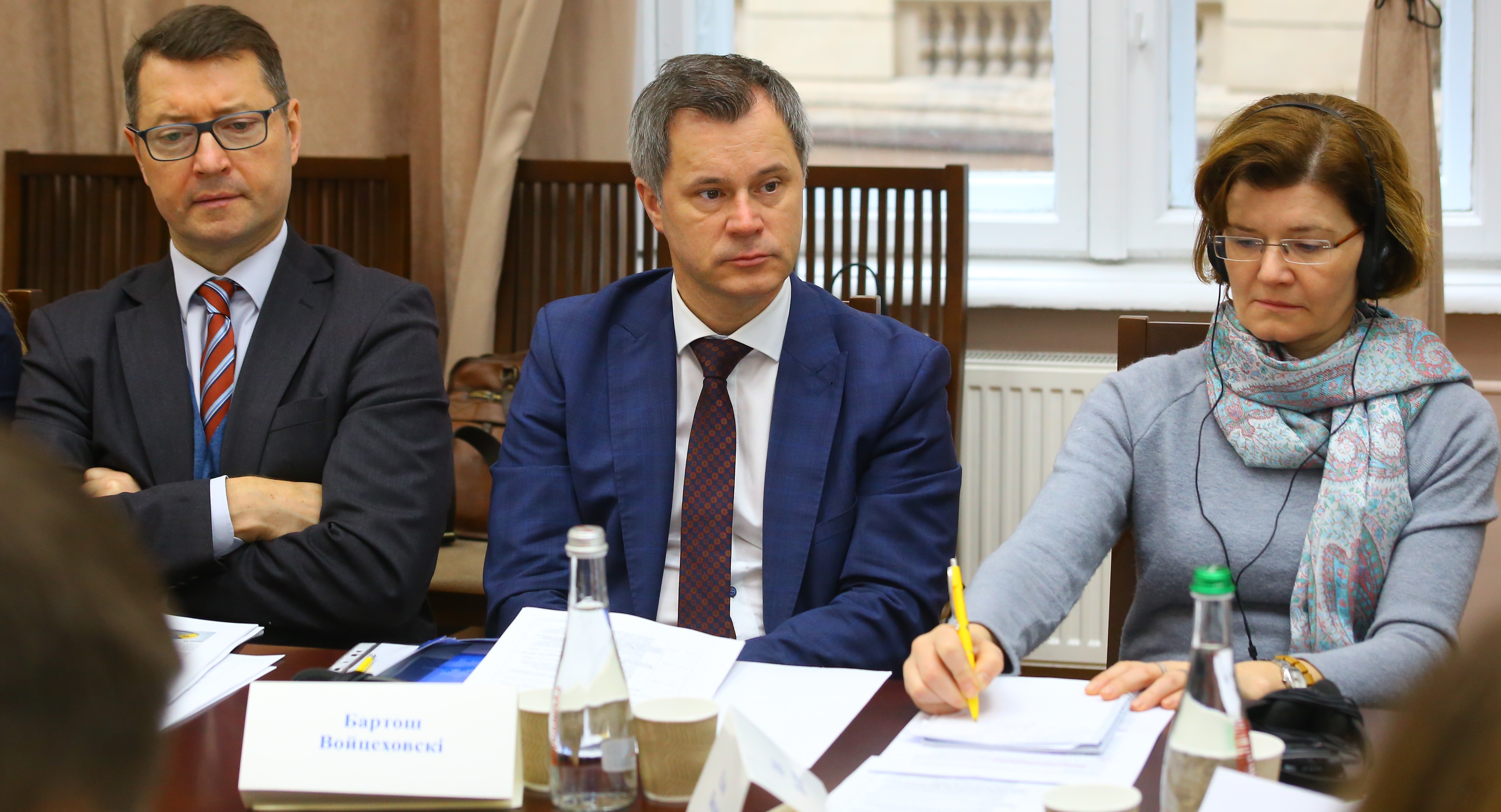 Міжнародні партнери-експерти Проекту ЄС «Право-Justice» Віргіліус Валанчіус, суддя Суду справедливості ЄС, Едіт Целлер, президент Асоціації європейських адміністративних судів, суддя Адміністративного суду Відня, Бартош Войцеховскі, суддя фінансової палати Вищого адміністративного суду Польщі – надали власну оцінку стану здійснення адміністративного судочинства в Україні та висловили рекомендації з огляду на міжнародний досвід та практику.
