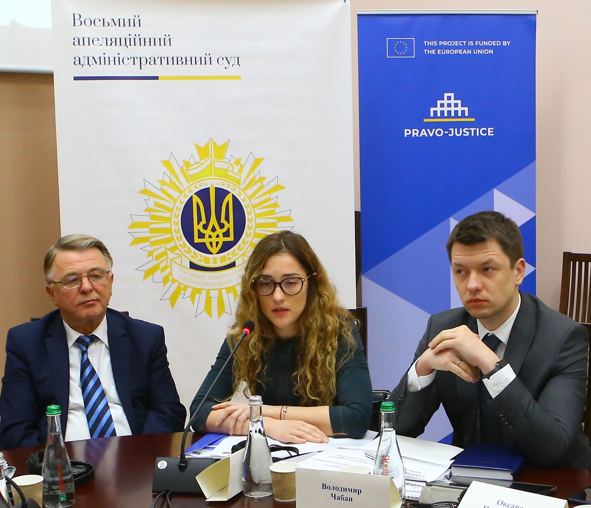 Голова Восьмого ААС Олег Заверуха висловив вдячність усім присутнім за активну участь в процесі вивчення сучасного стану здійснення адміністративного судочинства. Особливо важливо, за словами голови апеляційного адміністративного суду, що співпраця з Проектом ЄС «Право-Justice» має системний характер: про це свідчить і міжнародний круглий стіл «Моніторинг адміністративного судочинства в Україні: обсяг, проблемні питання», що відбувся у травні 2019 року, і інші заходи в рамках діяльності Регіональної ради реформ правосуддя. Як відомо, моніторинг проводився упродовж листопада 2018 - квітня 2019 року міжнародними та національними експертами шляхом вивчення думок та позицій суддів, адвокатів, суб’єктів владних повноважень та науковців у формі індивідуального спілкування під час круглих столів, конференцій та під час заповнення спеціально розробленого опитувальника.