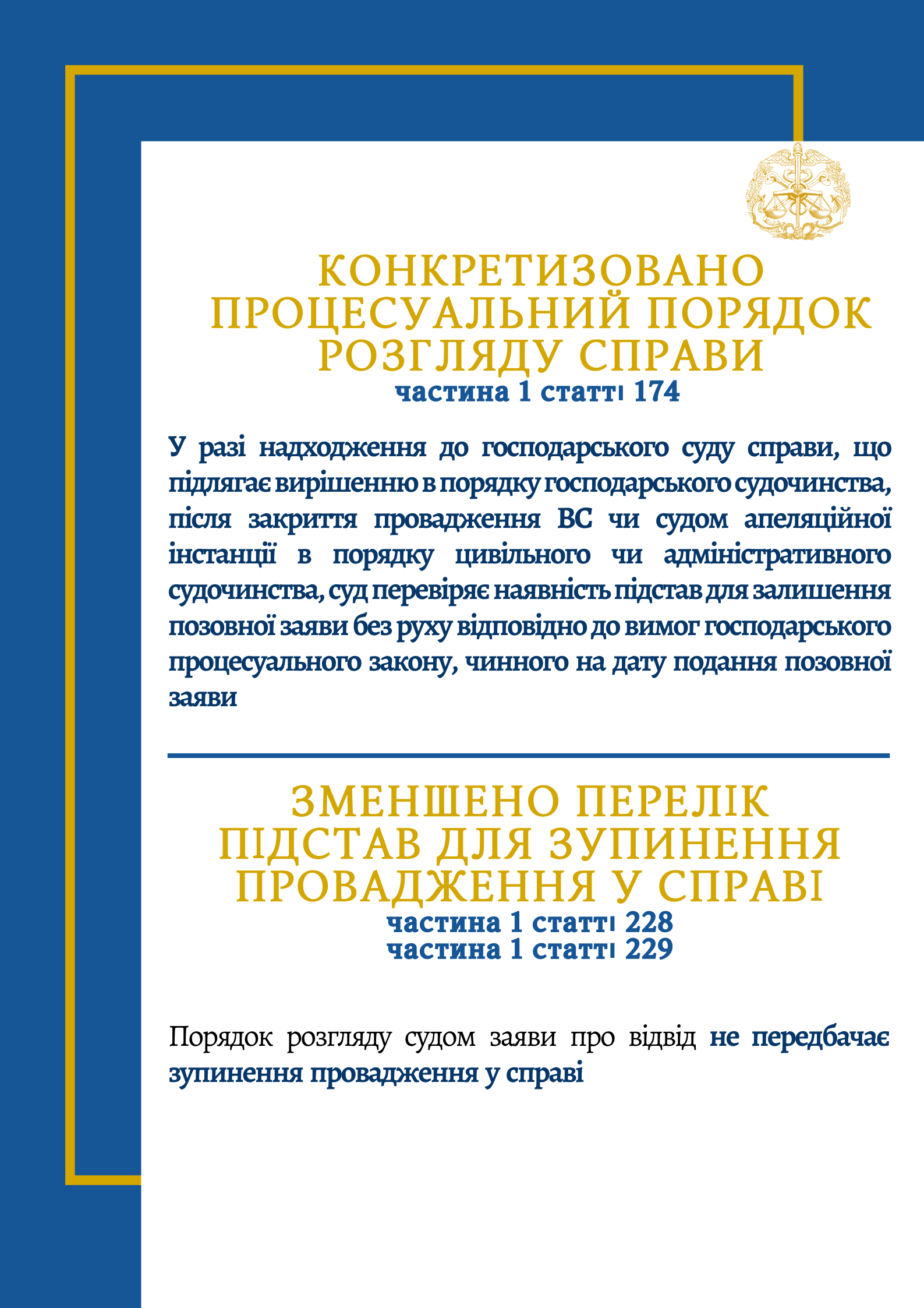 Внесено зміни до процесуальних кодексів! Вже опубліковано Закон України №460-ІХ від 15.01.2020, який передбачає вдосконалення порядку розгляду судових справ.