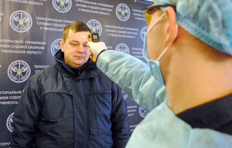 Перед тим, як заступити на службу з охорони приміщень та підтримання громадського порядку в судах Рівненщини, усі співробітники Служби судової охорони пройшли індивідуальний температурний скринінг.