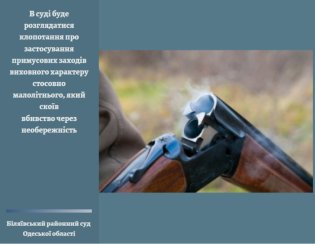17 березня 2020 року до Біляївського районного суду Одеської області надійшло клопотання про застосування примусових заходів виховного характеру стосовно малолітнього Р. (2006 року народження, учня 8 класу) за вчинення суспільно небезпечного діяння, яке підпадає під ознаки діяння, передбаченого частиною першою статті 119 Кримінального кодексу України (вбивство, вчинене через необережність).